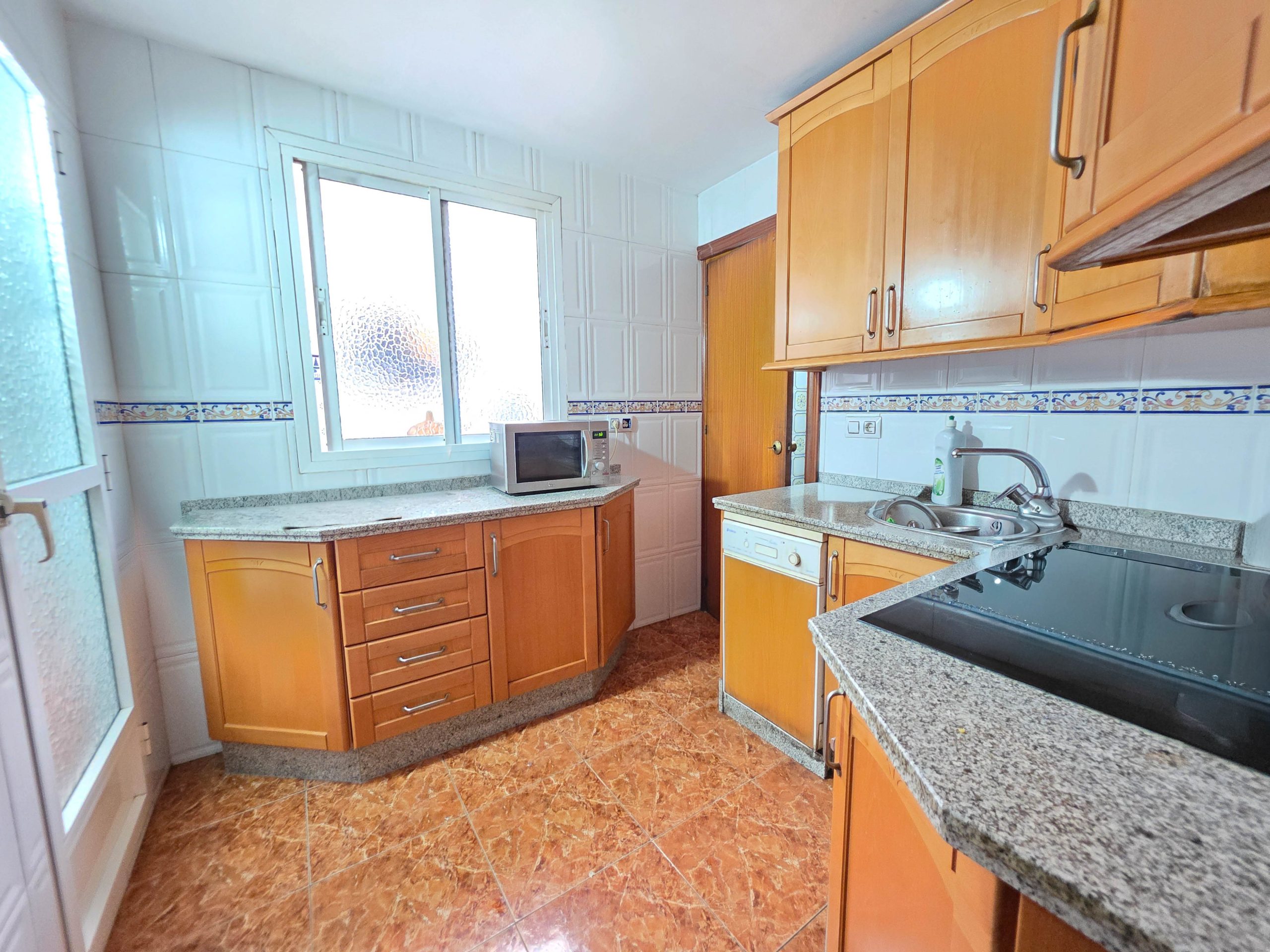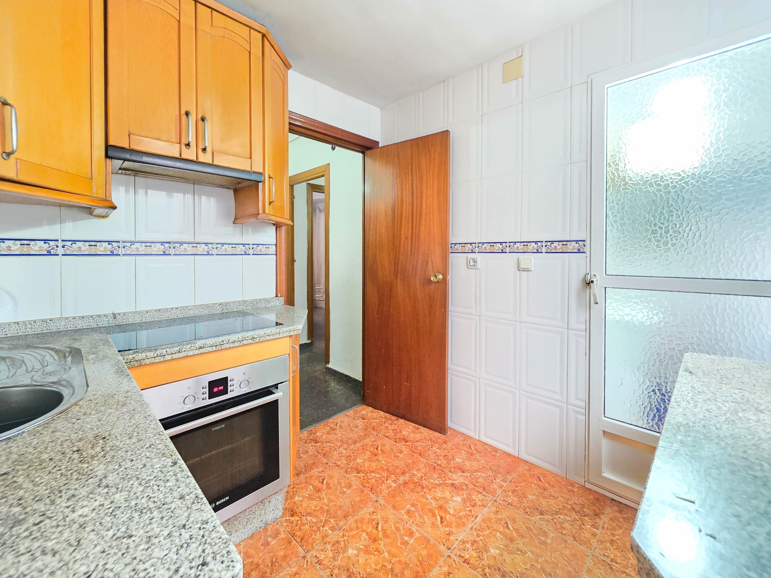 Entre sus calidades, cuenta con carpintería exterior Climalit, suelos de terrazo y dos armarios empotrados, lo que permite un buen espacio de almacenaje. Los espacios son amplios y luminosos.